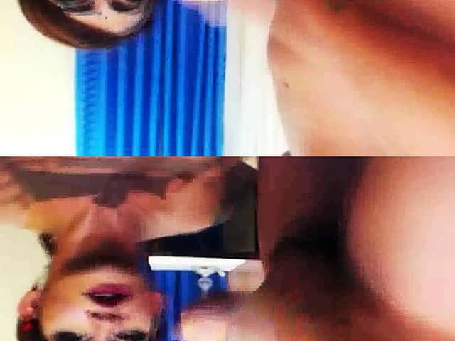 Cute Asian tranny gives a blowjob and cums over dudes cock