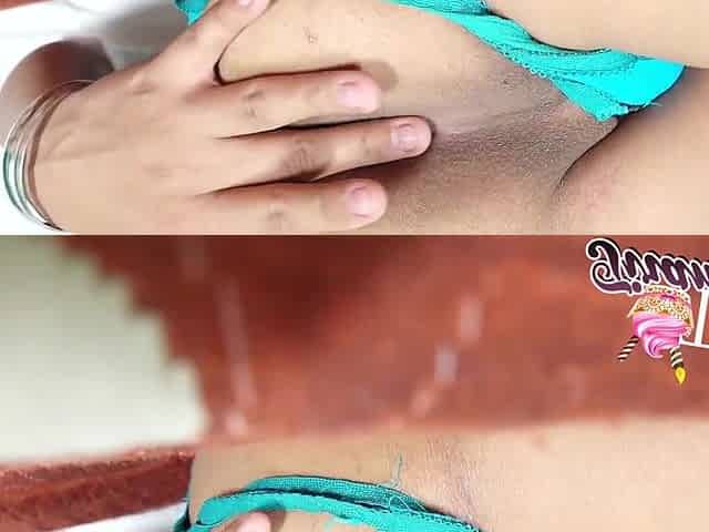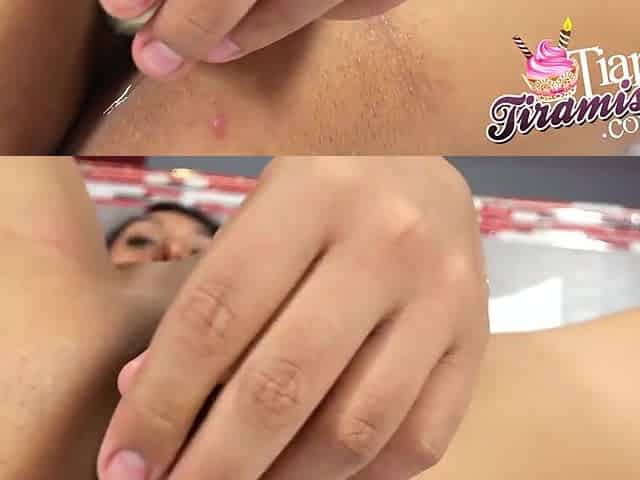 Skinny teen ladyboy in pink panties enjoys solo masturbation
