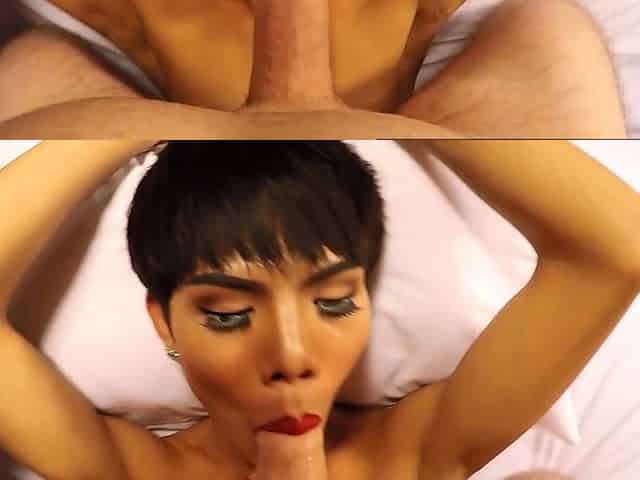 Horny Thai sex tourist with skinny tranny shemale transsexual
