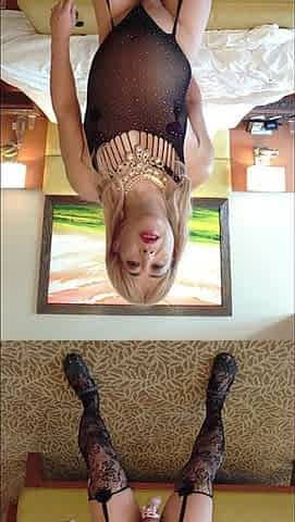 Brunette hair ladyboy with high heels disrobes her grey costume and
