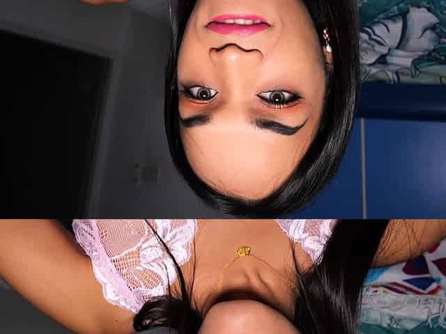 Brunette Asian shemale with small tits sucks her lover's