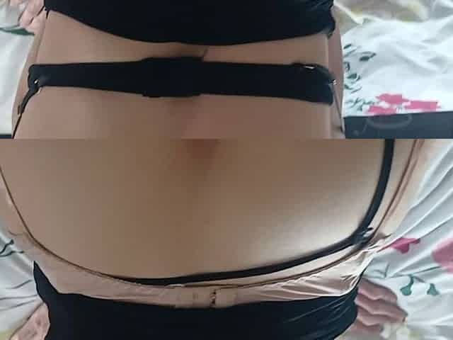 Slender Asian shemale in black lingerie gives her boyfriend