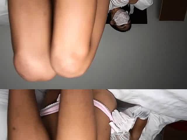 Slender Asian shemale in lace panties gets her small cock