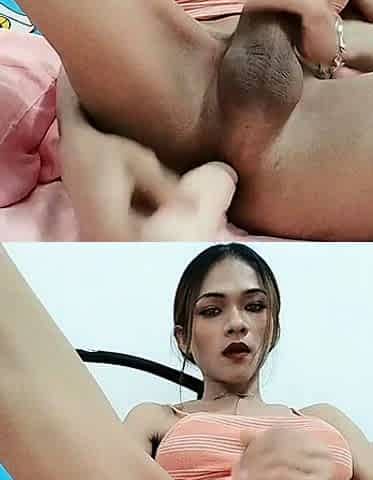 FULL movie of ladyboy with pink lipstick jerks off her tiny