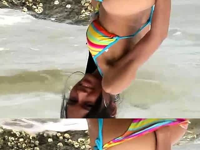 Skinny Ladyboy In Tight Dress Plays With Her Fat Trimmed