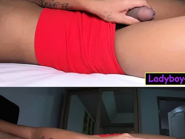 Thai ladyboy Plam plays her shecock in hot solo masurbation