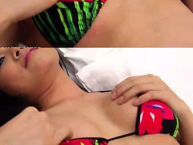 see hawt oriental ladyboy Mina masturbating with a sextoy in her booty