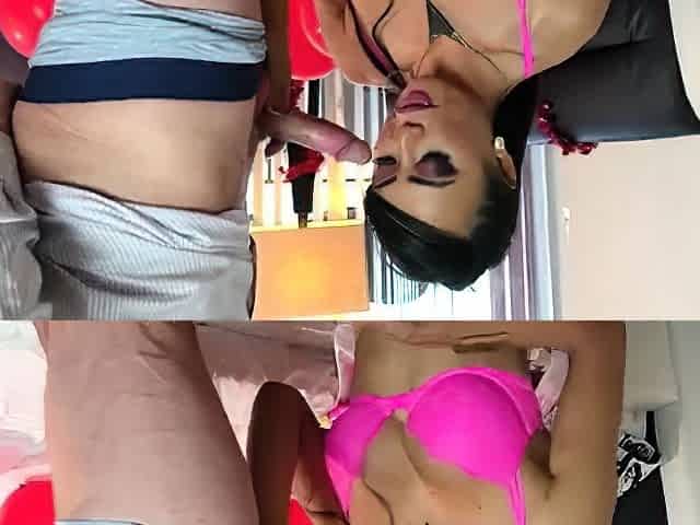 Amateur blowjob and anal with shemale