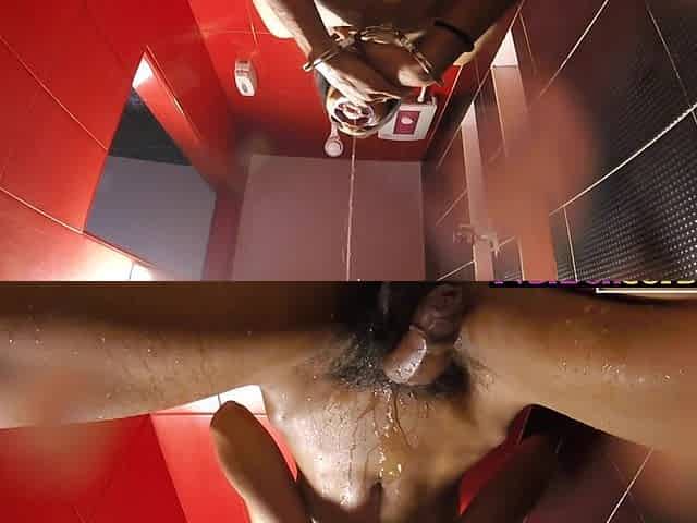 Handcuffed Asian ladyboy teen Game pissed in mouth and big cock sucking