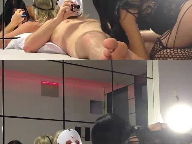 Brunette Hair ladyboy in pink and ebony suit gets her butt