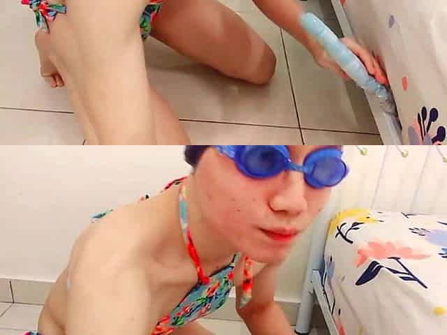 Sissy Femboy Sucking Dildo and Fucking Her Asshole in Sexy Bikini