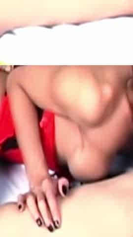 Brunette ladyboy in red panties gets her small cock sucked