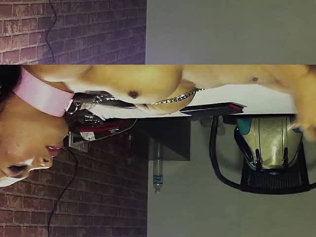 Tanned Asian slut wearing a bikini top gets her holes pounded hard