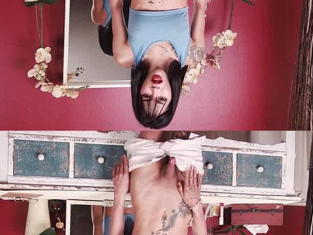 Asian T-Girl Agatha Alencar jerks her hard cock