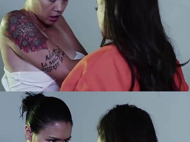 Petite Asian babe kiss and licks mums busty milf bffs pussy