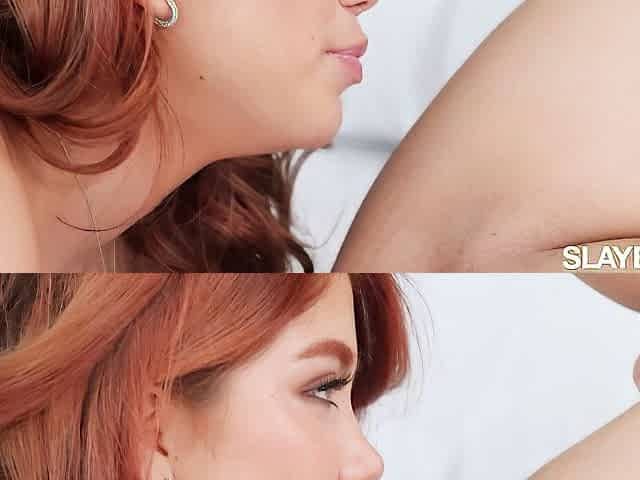 Marina and Cara are enjoying lesbian sex play in the bedroom