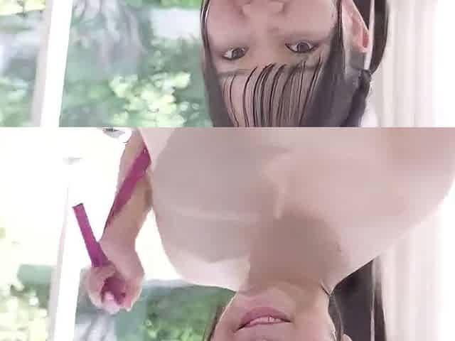 A petite Oriental woman massages a large dong