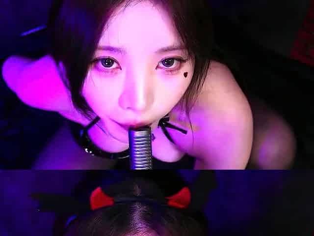 ASMR ear licking succubus rubbing big tits and blow job
