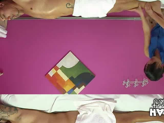 Aron Matthews really enjoys the massage performed by Kim Kong