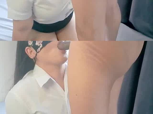 Breathtaking and large tit oriental masseuse rub her large hard nipps on her ebony client and greater amount