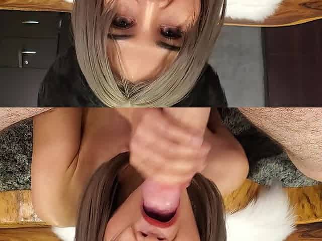 Bitch gives wam blowjob and handjob in pov scene