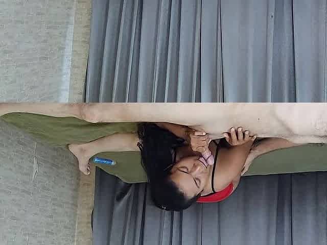 Dirty asian lady fellating 2 meaty fuck-sticks in