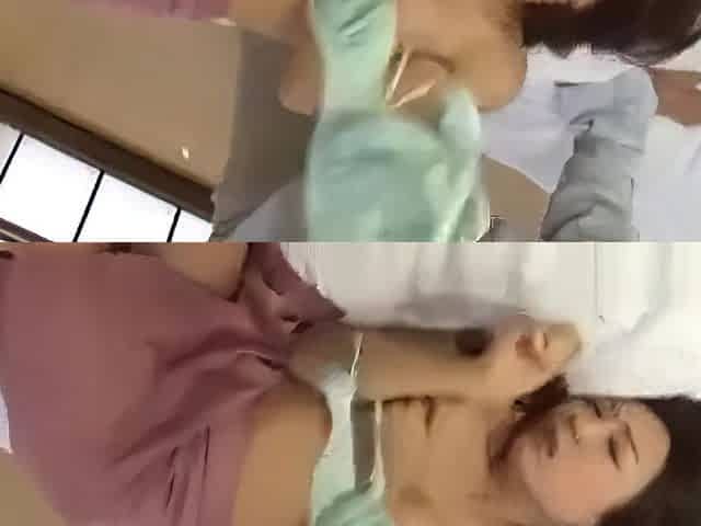 Dirty Japanese teacher slurps G-cup boobs of stuck Kasumi -