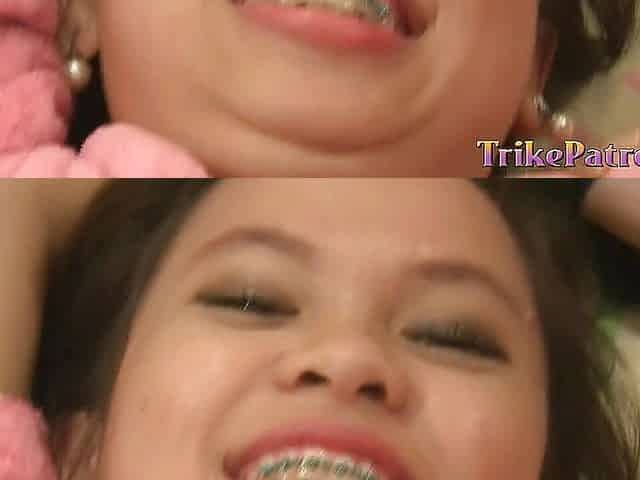 Asian bebe and sexy blonde milf lesbian dildo penetrated