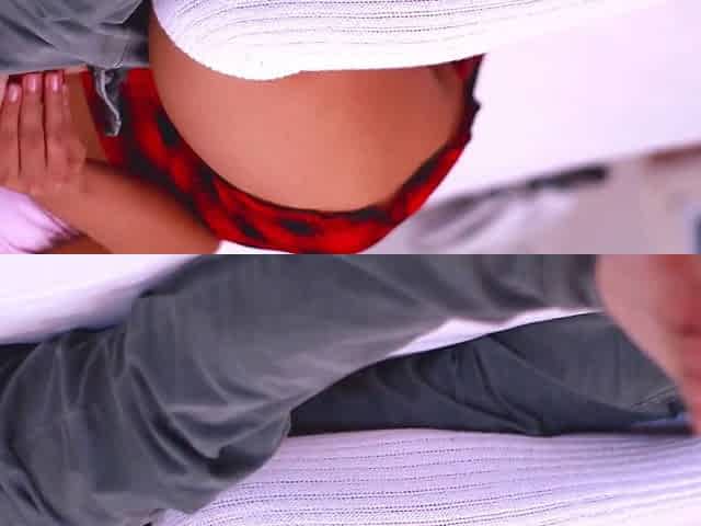 Stepmom Wear Panty Laying on Bed Stepson Watch Her