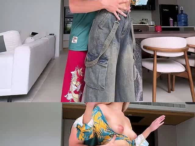 The stepsister is banged very intensive during the time that preparing breakfast in the kitchen