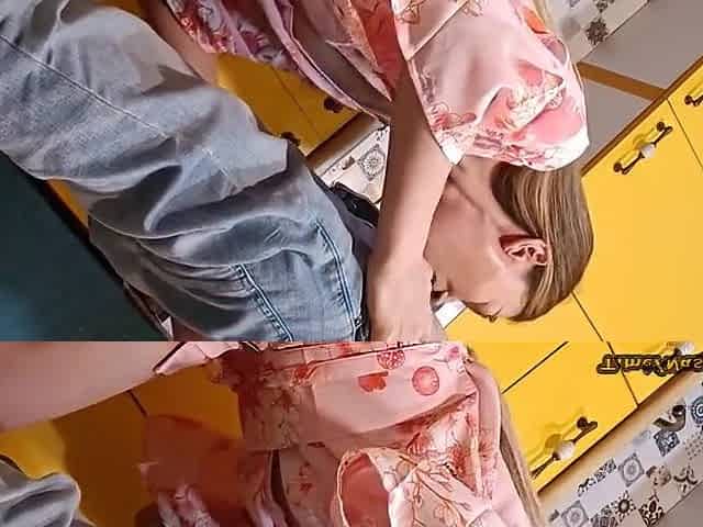 Small tit GF gives POV blowjob on my denim