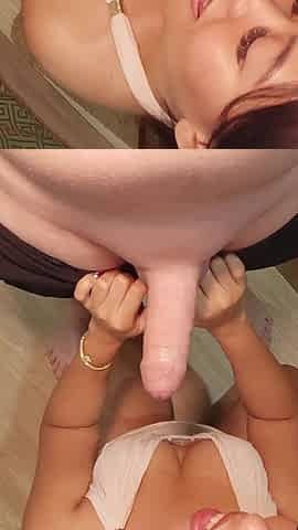 Big cock brunette MILF sucks a big cock POV