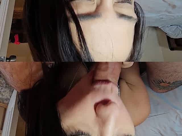 Small tit GF gives POV blowjob on my denim