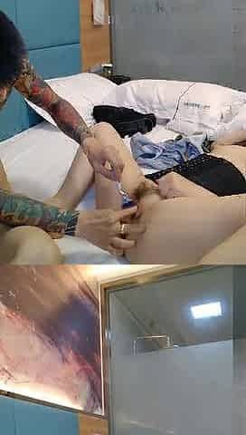 Wet tattooed raven babe Sahron with big boobs masturbates