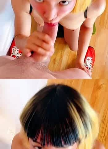 Chubby BBW Big Tit Babe Blue hair and stockings