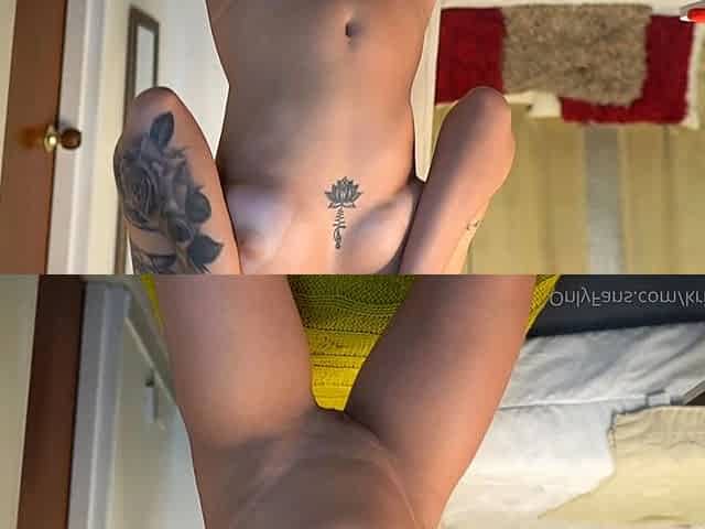 Tattooed brunette with hot ass and natural tits fingering herself