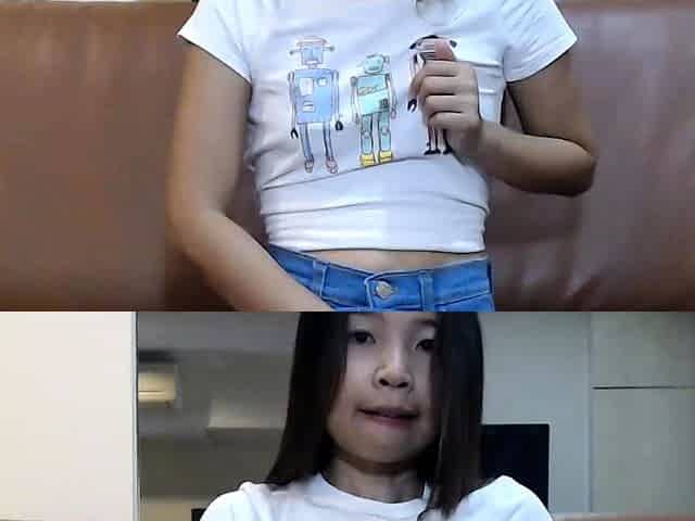 Cute amateur asian web cam girl playing with her toy