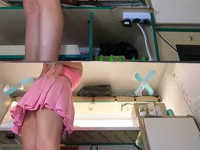 Super cute angel in pink mini petticoat secretly upskirted at work - voyeur pov