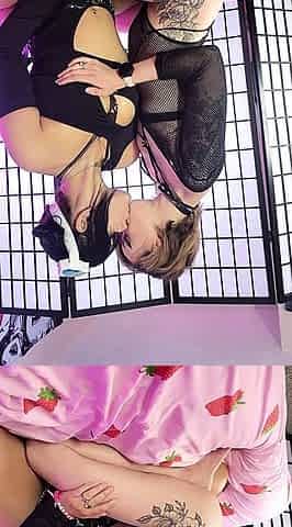 Blonde hottie and brunette slut licks and kisses each others