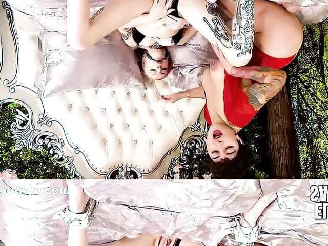 Tattooed ladies Electra Santiago and Quinn are enjoying sex toys