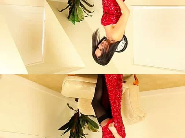 Beauty In Glossy Hose Shares Couch With Ally, Bangs & Gets Creampied