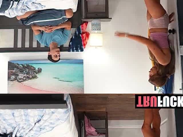 Step sis throwing it back hard and got it hard in her booty and gaped