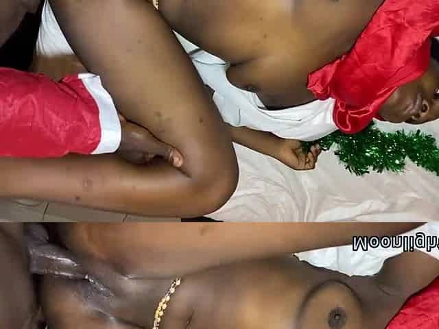 Black stepdaughter sneaky bangs bbc Santa Claus behind her daddy