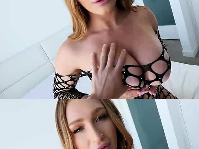 Cute ginger Scarlet Skies loves some naughty talk while enjoying a blow job