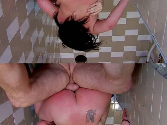 Phat ass brunette Terry Kemaco gets nailed hard in the bathroom