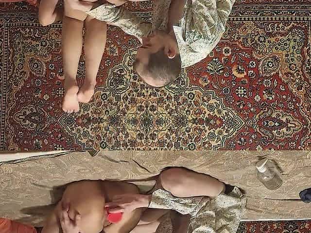 Slutty lesbians Olive and Sneila love fucking with a huge anal dildo