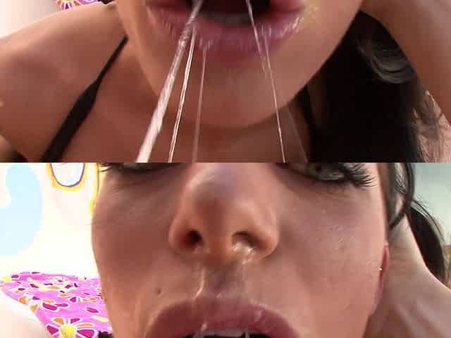 Beautiful brunette gets her pussy close up with a deepthroat fetish