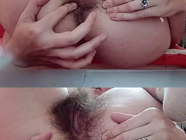 Big-bottomed chick with tight anal hole poses naked in close-up