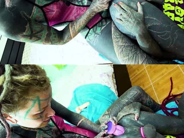 Tattooed babe Anuskatzz endures a wild ass-fucking session