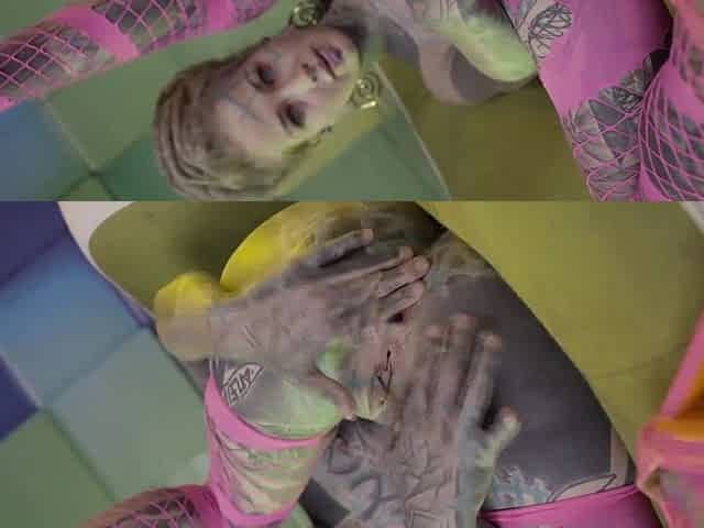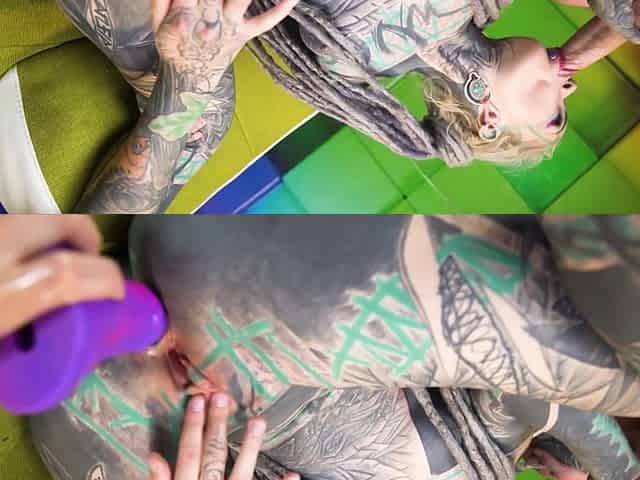 Heavily tattooed Anuskatzz stretches her arse